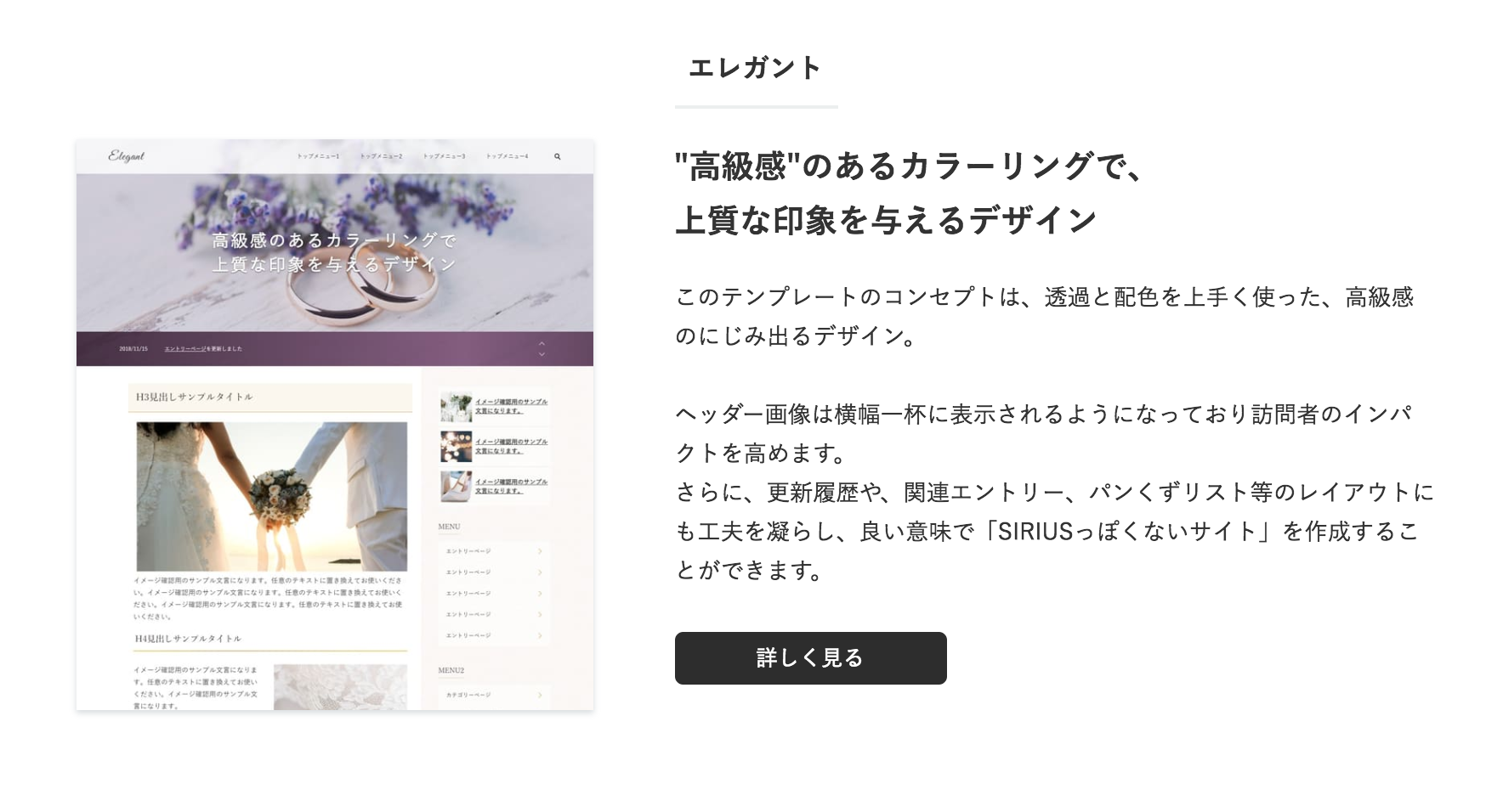 ぶっちゃけシリウスさえあれば、シリウスを使いこなすことができれば、どんなサイトでもある程度はきれいに作れるようになりますので、ぜひ1度は挑戦みてほしいツールになります。松尾さんの賢威とかもすごいですけどね。で、肝心の追加テンプレートですが今回は2018/12/6に発売されるようで、パターンは4種類ほどでるようです。