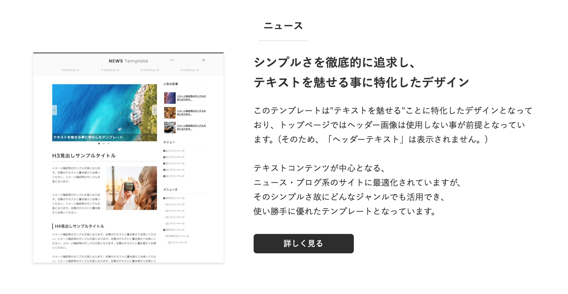 こんなデザインも。。。こちらは【追加テンプレート5】ニュースの緑ってもので、ヘッダーがなぜか消えてしまいましたが、これはこれでありな気もしますね。。